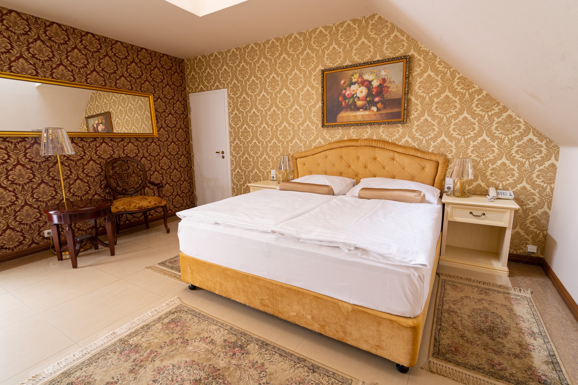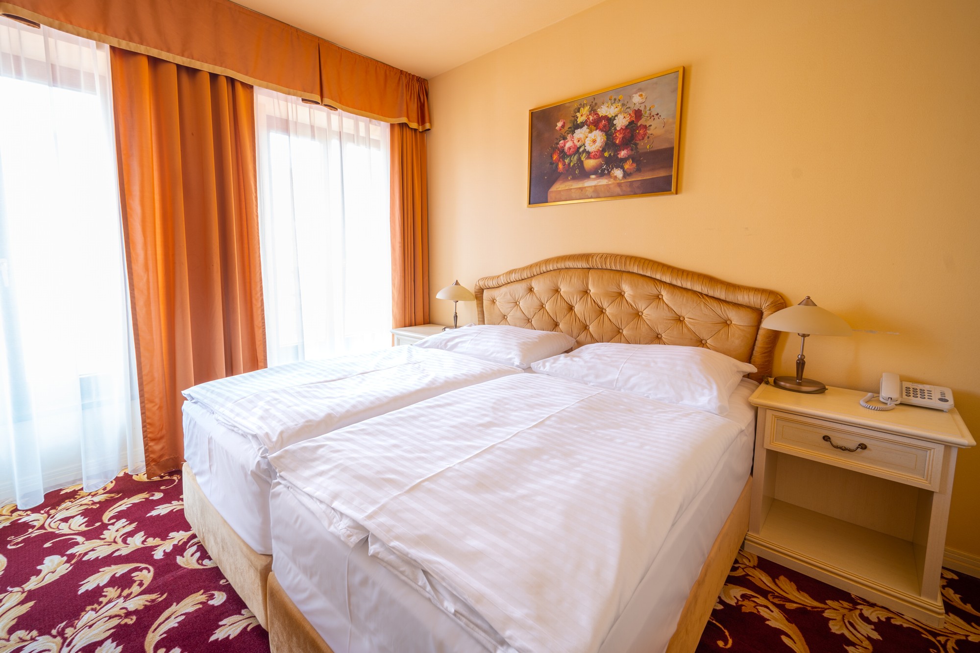 Všechny pokoje mají komfortní vybavení odpovídající standardizaci hotelu first class **** superior. K dispozici jsou dvoulůžkové, třílůžkové, rodinné pokoje a executive floor. V 8 NP je terasa. Celý hotel má certifikaci na tuto kategorii.