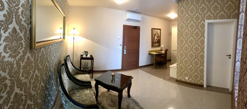 Velikost pokoje: 37 m2 Pokoj King se nachází v nejvyšším patře hotelu a nabízí výhled na historické centrum města s dominantou Černé věže. V pokoji je umístěno dvoulůžko (Queen). Pokoj je nekuřácký, má privátní vstup a vstup na střešní terasu s venkovním nábytkem, která je společná pro 3 pokoje na patře. V koupelně s otevíratelným oknem je kromě vany i sprchový kout a toaleta s bidetem. Cena pokoje zahrnuje snídani, čajový a kávový set na pokoji, DPH a městské poplatky.