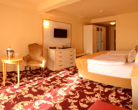 Room size: 25 - 30 m2 Spacious room overlooking the garden or Prague street, with a shared terrace or balcony. On the higher floors, there is a view of part of the historic centre of České Budějovice. The room is equipped with a double (queen) bed or two twin beds. The bathroom is equipped with a bathtub and toilet. All rooms of this type are non-smoking. The room price includes breakfast, VAT and city taxes.