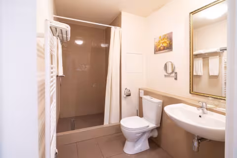 Room size: 18 - 28 m2 Room with a view of the garden or Prague Street and a balcony. The room has a double bed (queen) or two twin beds, the bathroom is equipped with a bathtub and toilet, in some bathrooms there is a spacious shower, especially suitable for seniors. All rooms of this type are non-smoking. The room rate includes breakfast, VAT and city taxes.